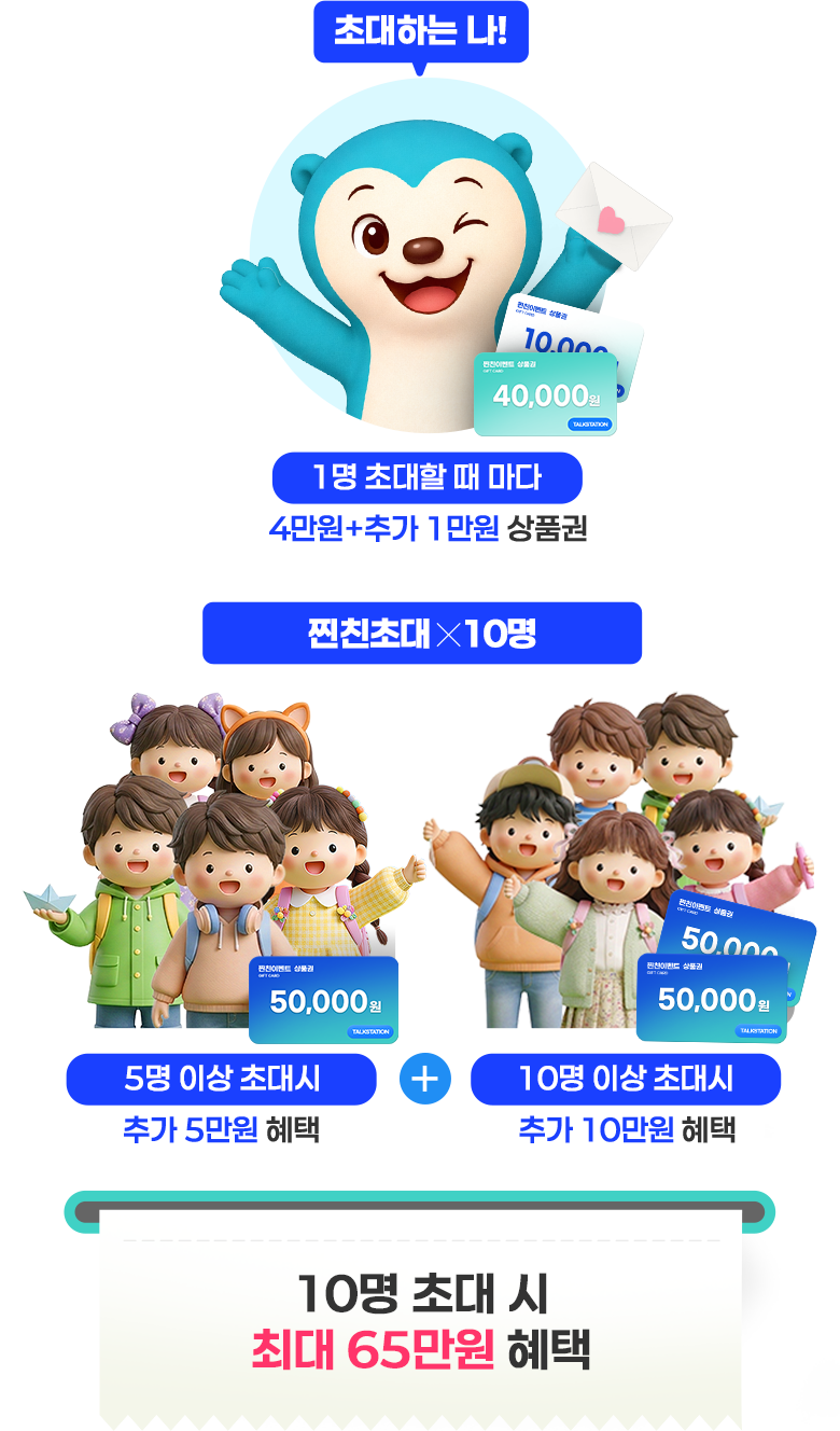 친구가 영어 학원을 찾아보길래, 아이가 하고 있는 토크스테이션 열심히 영업을 해봤어요! 무료체험부터 해보라고 혜택도 좋고 특히 선생님이랑 아이 케미가 너무 좋다고, 몇일 뒤에 무료체험 해보더니 아이가 너무 재밌게 했다고 정규수업 신청하고 지금은 저보다 더 열성적으로 주변에 추천하고 다니더라구요. 저는 상품권 받아서 좋고 친구는 영어 걱정 덜어서 좋고 이런 일석이조가 없는것 같아요. 이제 더 열심히 추천하고 다녀야 겠어요!