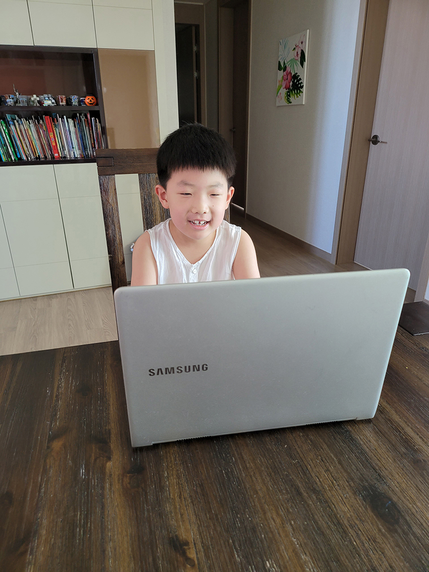 지금은 화상영어 수업시간을 즐기는 듯 하네요.
