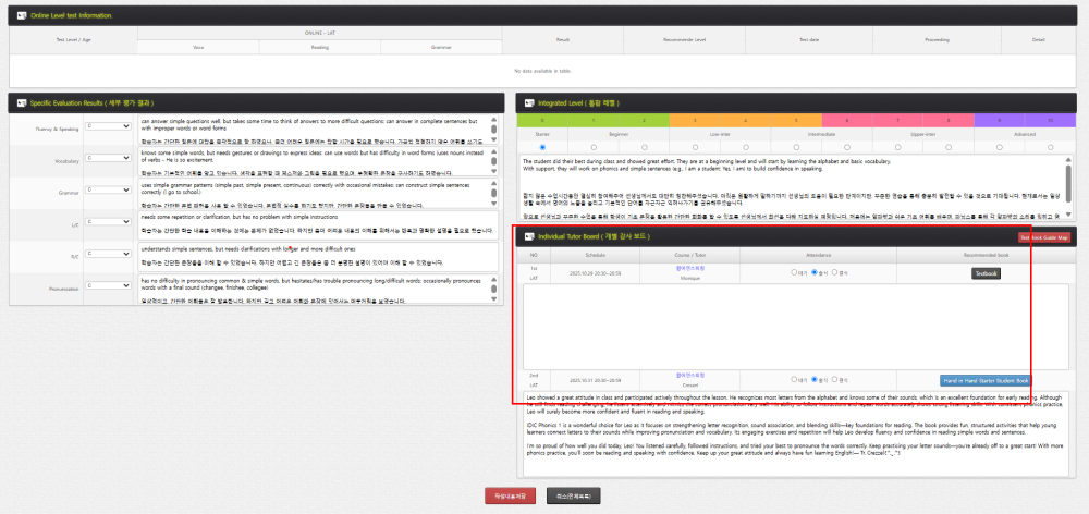 두번째 : 관리자 선생님의 상담내용이 아주 좋았습니다.(앞으로의 학습방향이나 저의 레벨분석, 어떻게 하면 영어 실력이 좋아지는지 설명을 해줌)