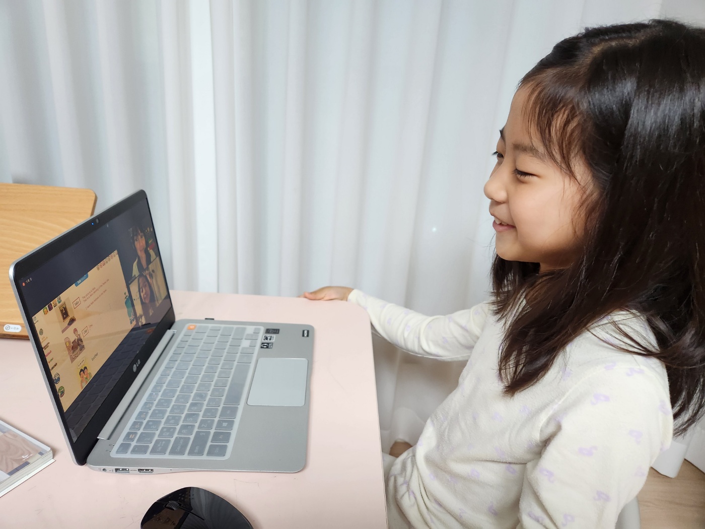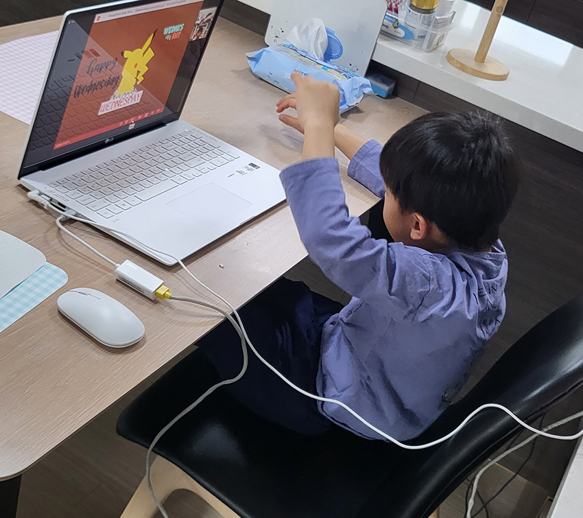 이제 선생님이 익숙한지; 장난도 치고 즐겁게 수업을 보내고 있어요.