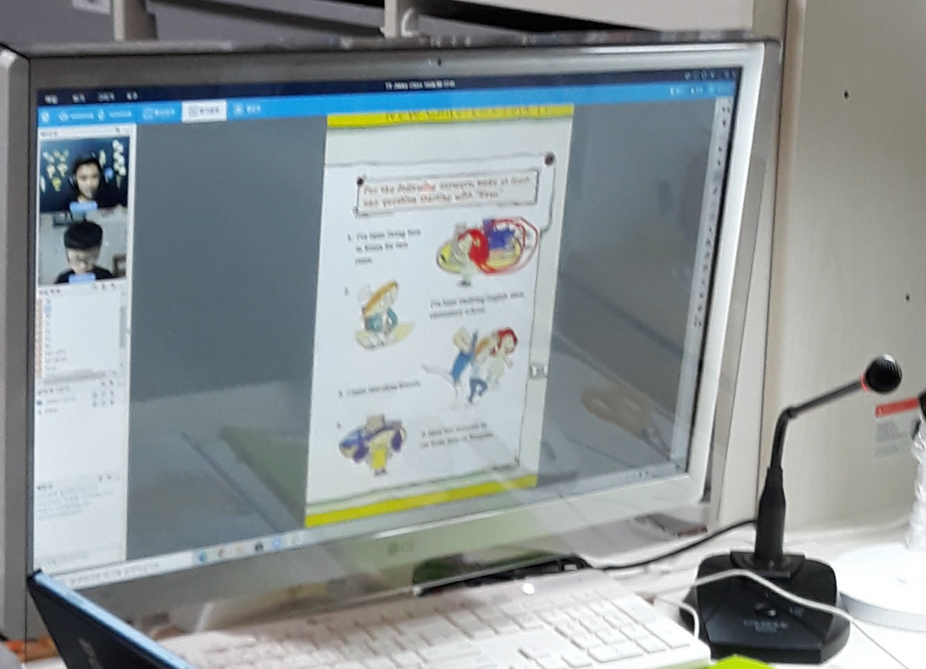 아이가 처음에는 영어로 화상 수업에 대해 두려워 했었습니다.