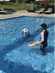 I played with my cousin in the swimming pool at Vienna Resort.